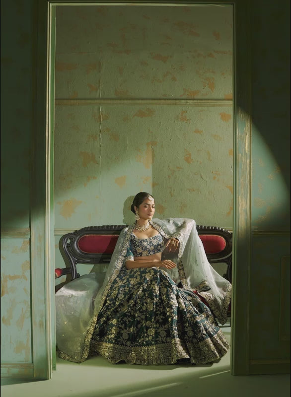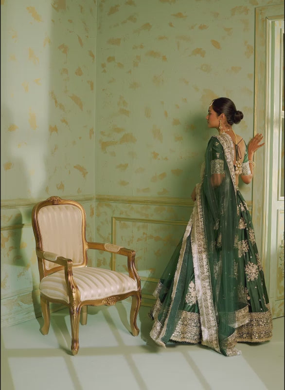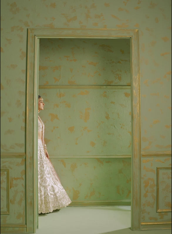 Dusty Mint Green Multicolor Embroidered Net Lehenga