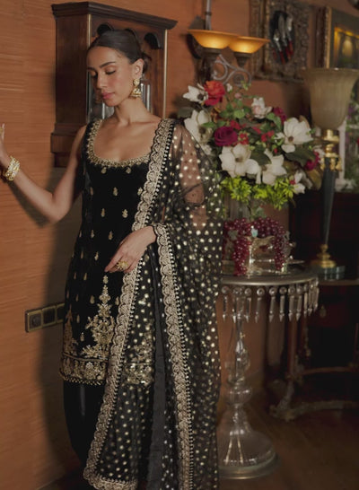 Black Embroidered Velvet Punjabi Suit