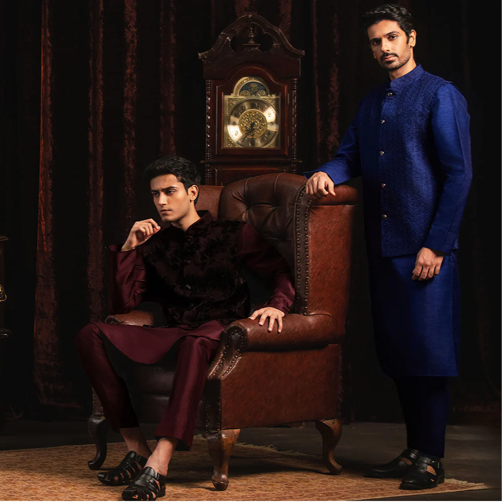 The length of the kameez can vary based on its design and pattern. It may differ from the standard length depending on the specific detailing and style of the respective outfit.