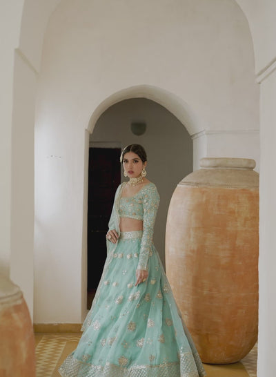 Dusty Blue Embroidered Lehenga