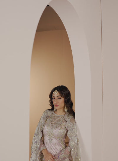 Our Dusty Pink Embroidered Straight Suit includes a net top with satin inner, satin bottom, and a silk dupatta. Embroidery is present on this style using zari, sequins, and stone work.
