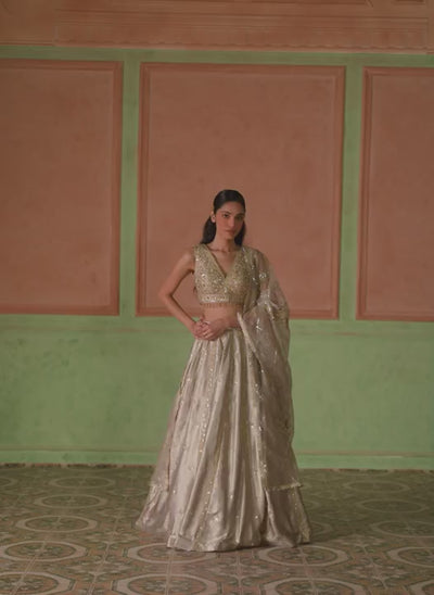 Gold Embroidered Foil Silk Lehenga