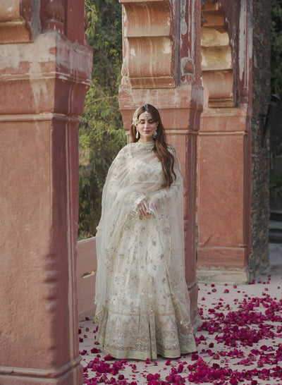 Our Off White Multicolor Embroidered Lehenga includes a net top with satin inner, net bottom with satin inner, and a net dupatta. Embroidery is present on this style using zari, sequins, thread, and stone work.