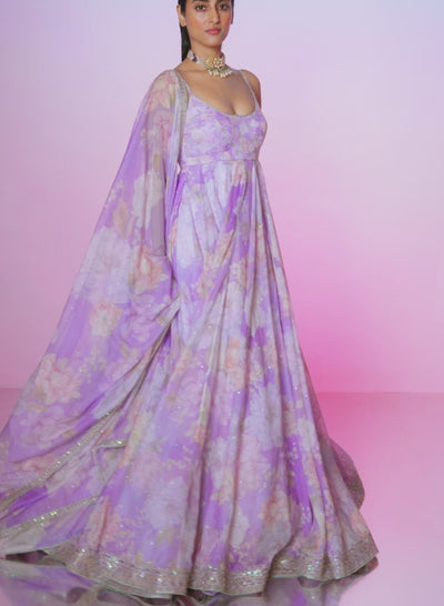 Purple Floral Embellished Anarkali