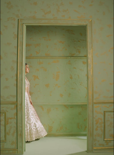 Our White Embroidered Lehenga includes a silk top, silk with santoon inner bottom, and a net dupatta. Embroidery is present on this style using thread, zari, and stone work.
